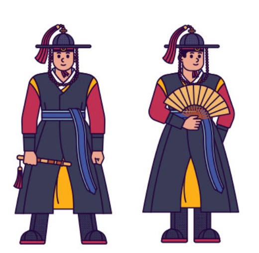 강릉대도호부관아를 대표하는 인물로 구군복을 입은 대도호부사가 각각 등채와 부채를 들고 서 있는 모습인데요~