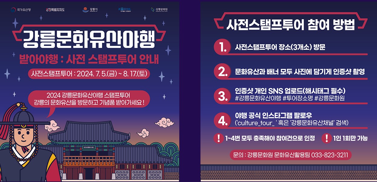 7월 5일부터 진행하고 있는 ‘강릉문화재야행 스탬프투어’에도 참여해 보세요.