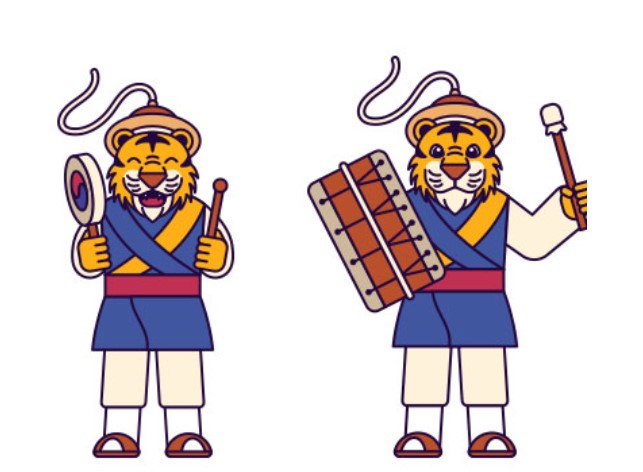 사물놀이 복장으로 익살스러운 표정으로 소고와 사물북을 든 모습이 너무 귀엽네요!
