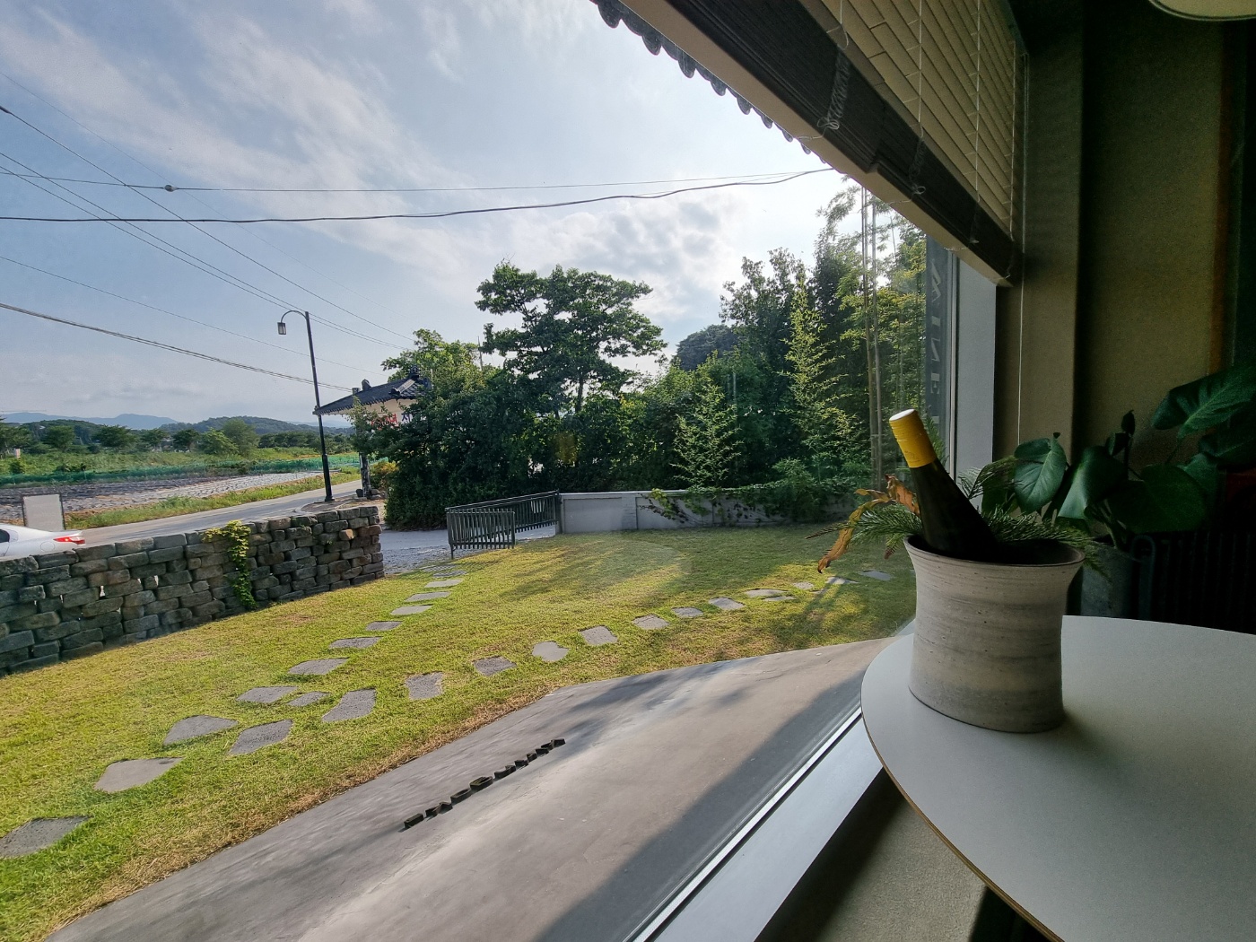 외관은 한옥 느낌이면서도 앞뜰의 잔디 마당과 뒤뜰의 대나무 숲은 아늑함과 편안함을 주면서도 멋스러움을 놓치지 않고 있었습니다.