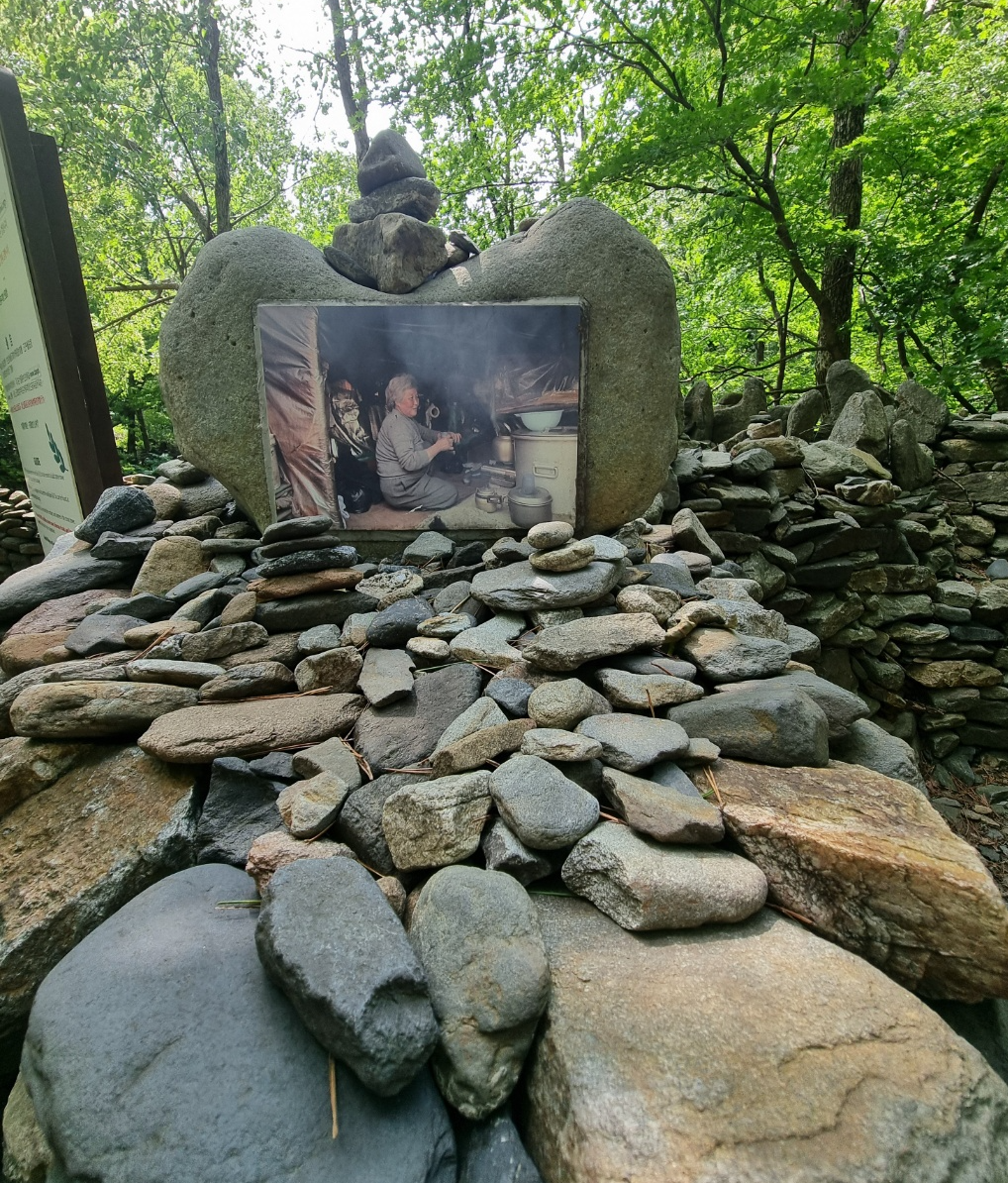 새우처럼 몸을 구부려야 겨우 누울 수 있는 정도의 움막을 짓고 생활하며 기도를 하면서 노추산의 자연석을