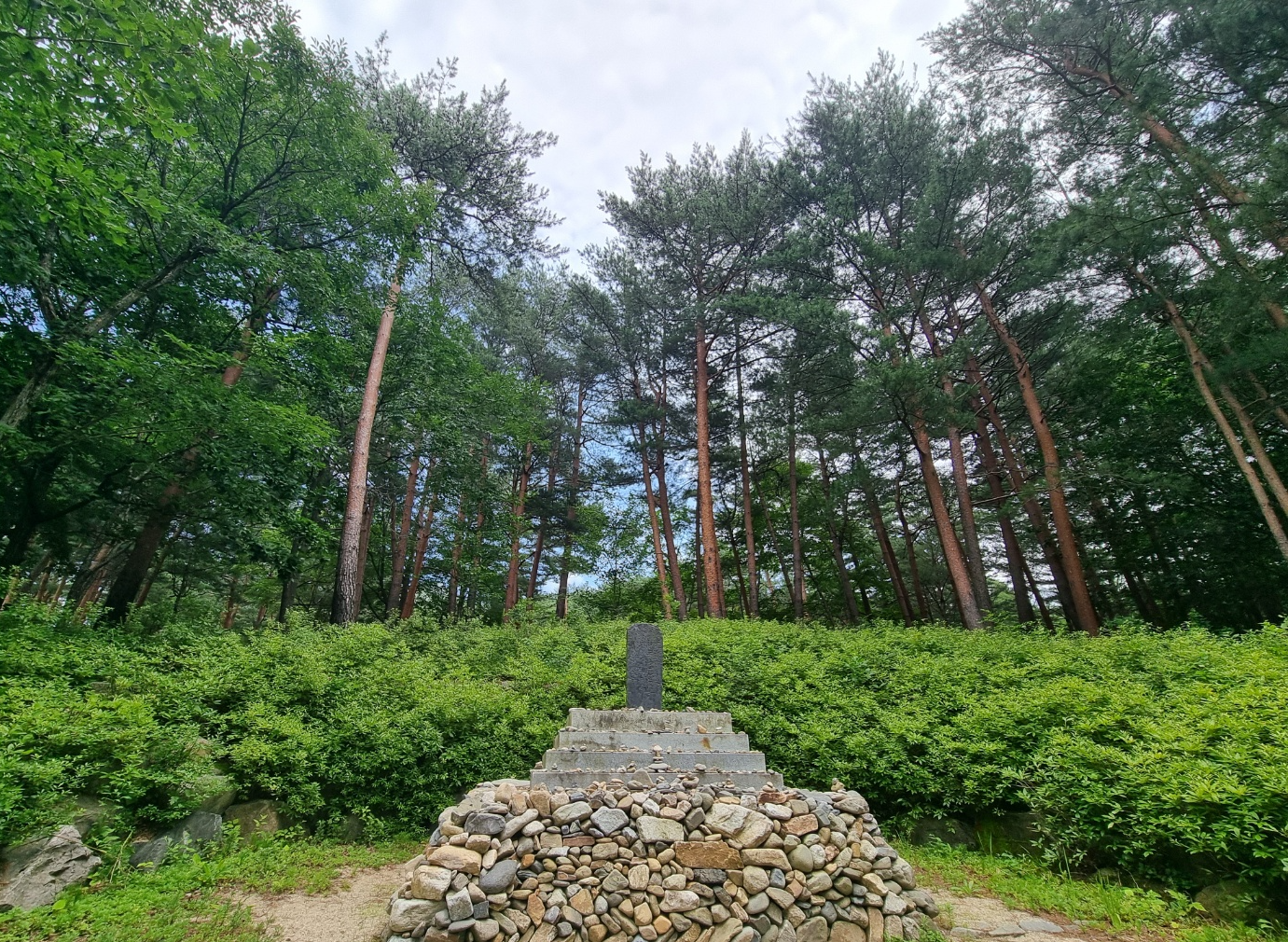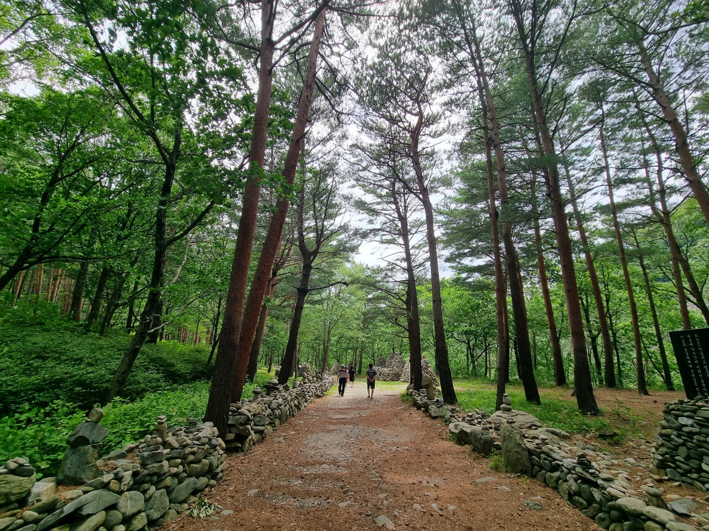 모정탑길로 가는 산책로 양쪽에 키 큰 소나무가 숲을 이루고 있어 너무나 시원하고 멋있고 편안합니다.