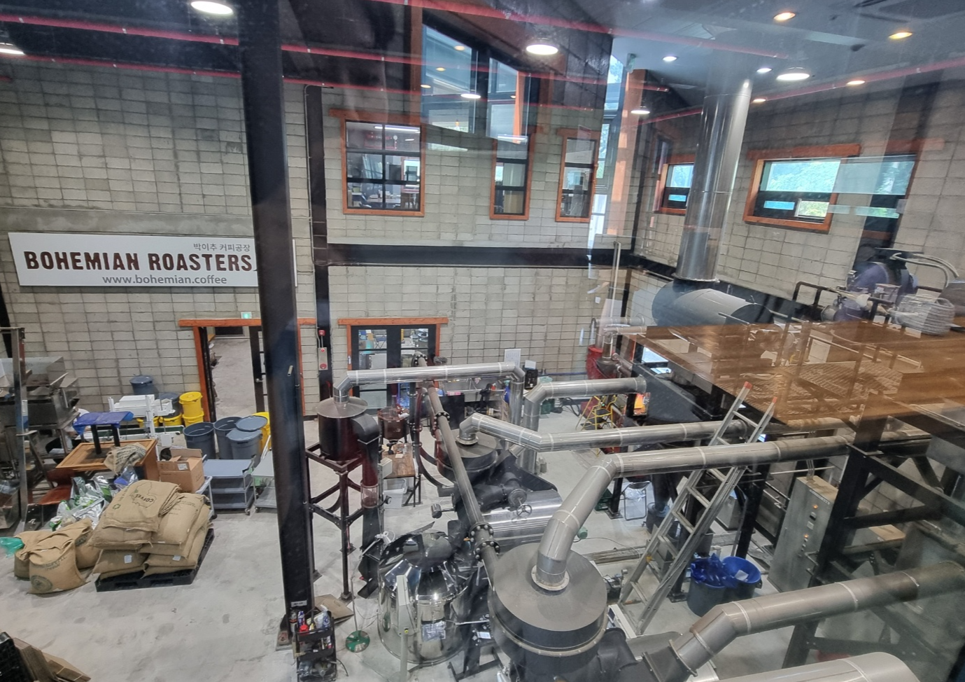 통로를 지나면 또 다른 2층 공간으로 연결되며 커피공장에서 작업하는 모습도 볼 수 있습니다.