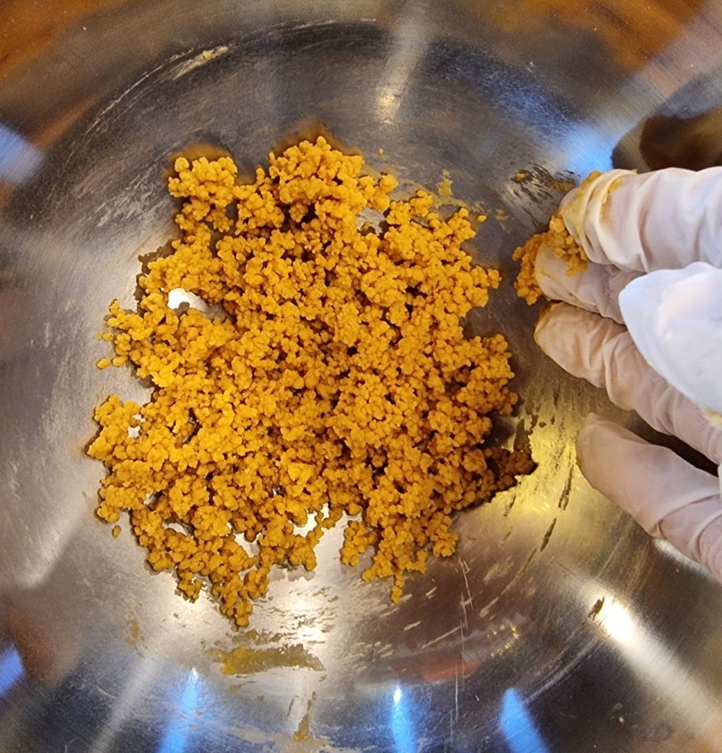5) 알갱이가 된 상태에서 전체를 꼭꼭 다지며 뭉쳐 줍니다.