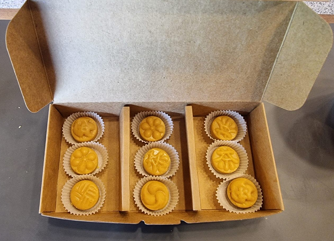 11) 완성된 다식을 포장 용기에 예쁘게 담아 줍니다.