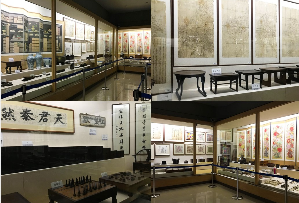 전시물로는 1800년도 초반에 제작된 팔도 지도와 추사 김정희의 현판, 다기와 가구류 등을 볼 수 있습니다.